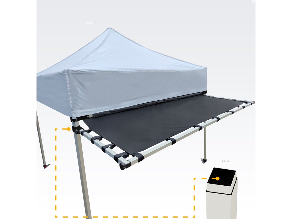 - La tenda ha una larghezza di 60 cm, che consente una copertura e una protezione adeguate. È facile da fissare utilizzando morsetti in nylon che si attaccano alle gambe della struttura del vostro stand. Il materiale della tenda è collegato al tetto con una robusta cerniera lampo, garantendo un fissaggio stabile e sicuro.